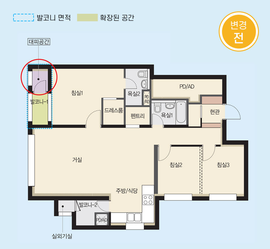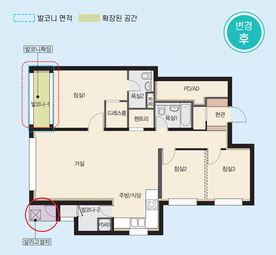▶ 75㎡ 변경전후 (발코니 확대)