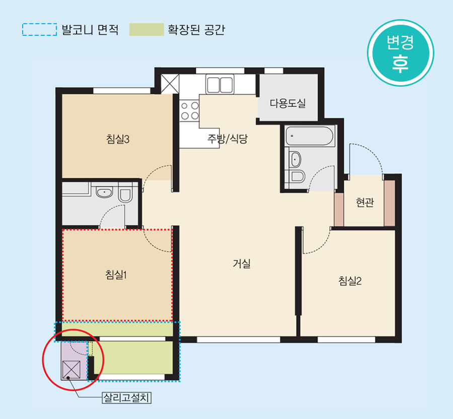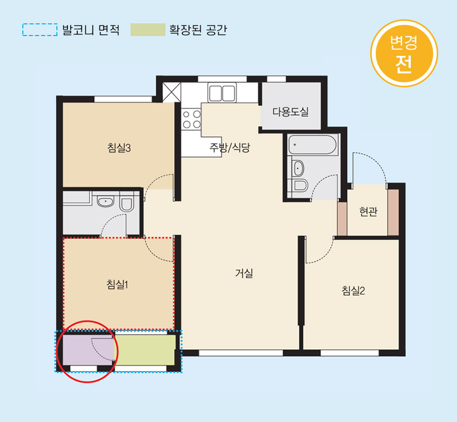 ▶ 59㎡ 변경전후 (침실+발코니 확대)