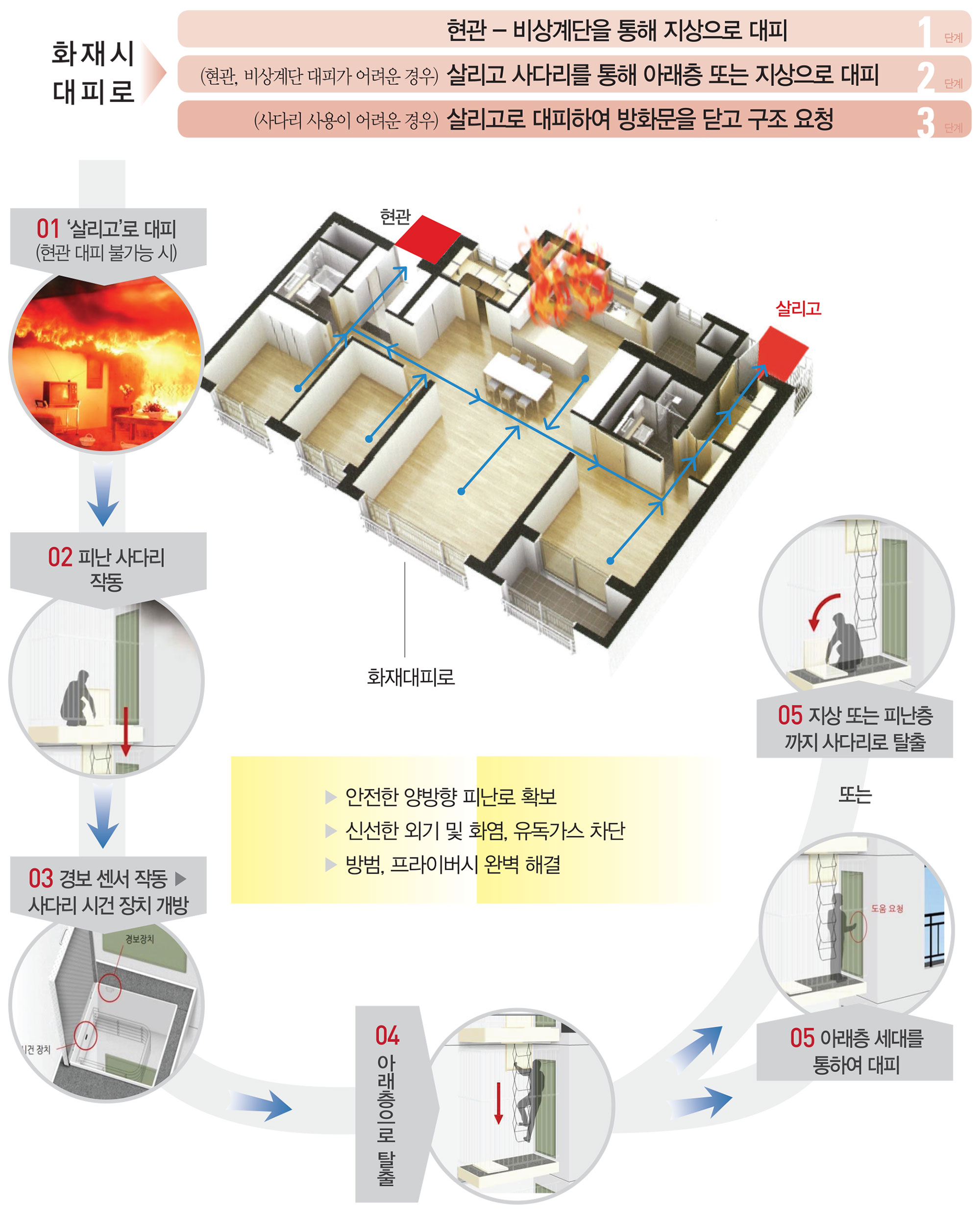 '탈출'과 '대피 모두 가능한 법정 시설