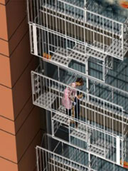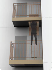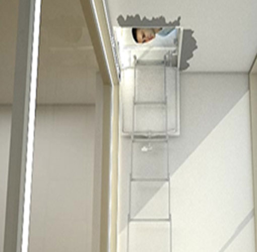 • 아파트 외벽에 설치하는 대피 시설 - 화재 시 하향식피난구 내림사다리로 아래층 또는 지상층(피난층)까지 대피