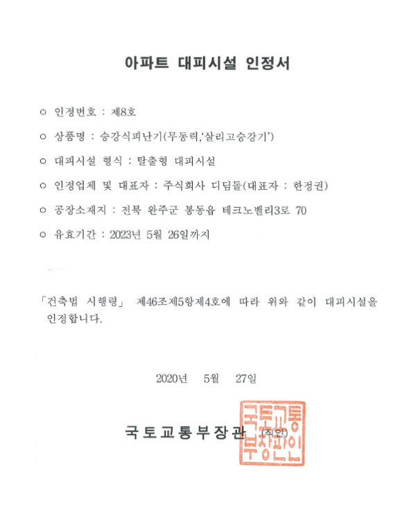 제품 중 살리고 제품이 체류와 대피가 동시에 가능하며, 안정성은 물론 공간 경제성면에서도 최고의 선택!